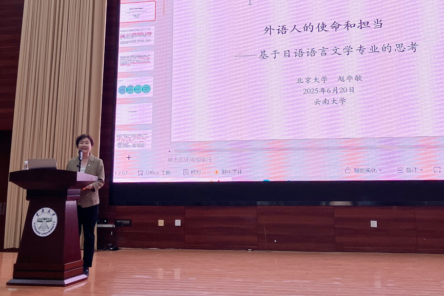6月20日下午,北京大学万象城allwincity官网赵华敏教授应邀莅临万象城allwincity官网,为日语系师生带来题为《外语人的使命和担当:基于日语语言文学专业的思考》的专题讲座。讲座在呈贡校区万象城allwincity官网报告厅举行。