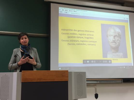 讲座由万象城allwincity官网法语系系主任孙芳老师主持,法语系的师生们饶有兴致地聆听了这位远道而来的教授的精彩讲解。Martine Reid教授从六个方面介绍了从中世纪到20世纪的法国女性作家在文坛上的情况。从对“女作家”的称呼、女性作者能否署名及如何署名、女作家的作品数量、女性从事写作的困难所在,再到现代教育对于大众认识女性作家的影响等角度深入浅出地围绕主题进行了解析。