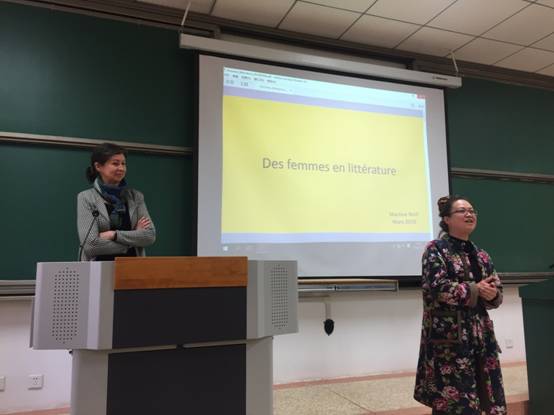 2018年3月12日,法国里尔第三大学教授Martine Reid在法国驻成都总领事馆科技与高等教育合作专员杜曦薇女士、法国高等教育署昆明办事处负责人李梅女士的陪同下,前来万象城allwincity官网呈贡校区给外语学院西语系法语专业的师生做了一场题为“法国文学史上的女性作家”的讲座。